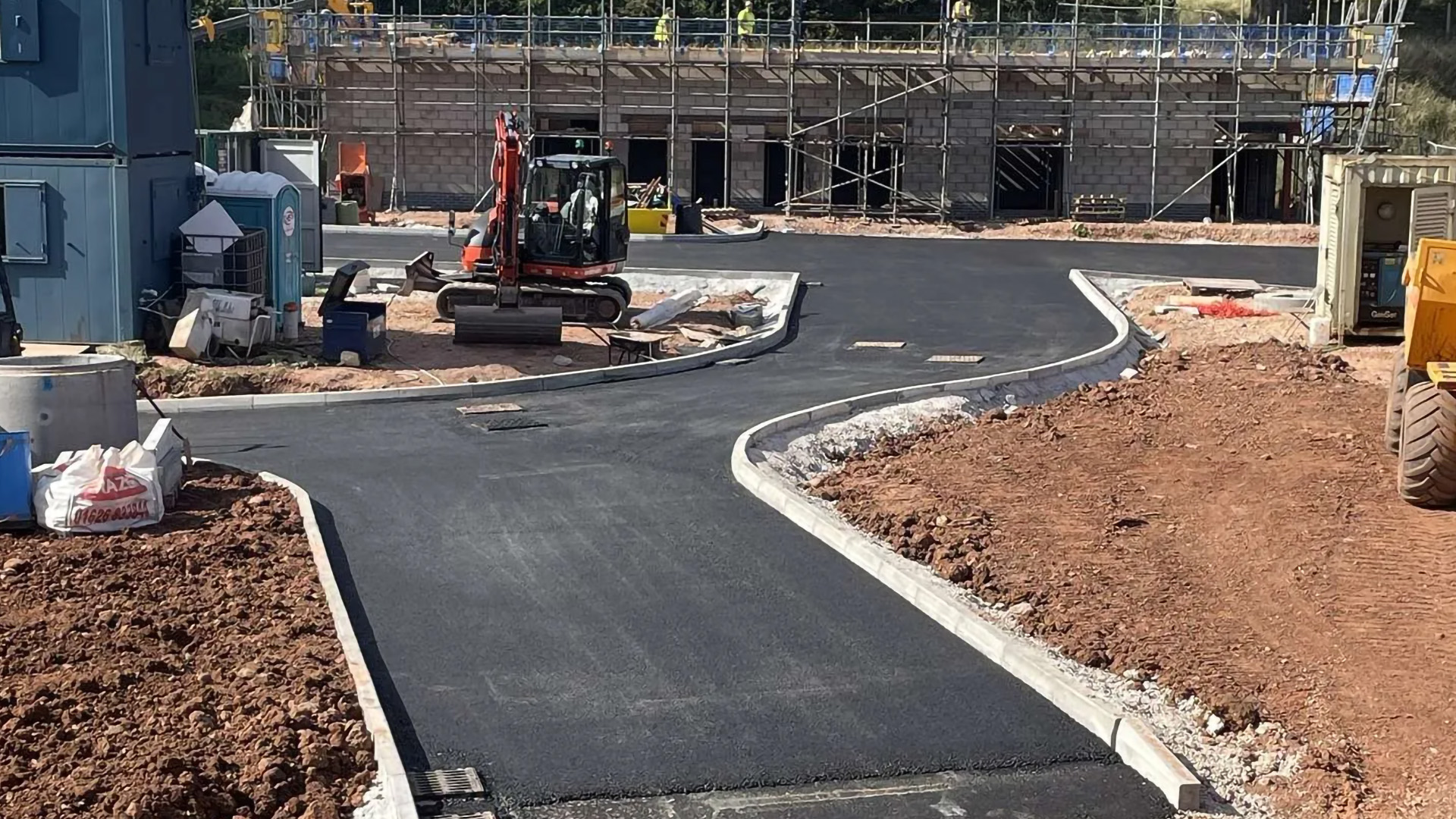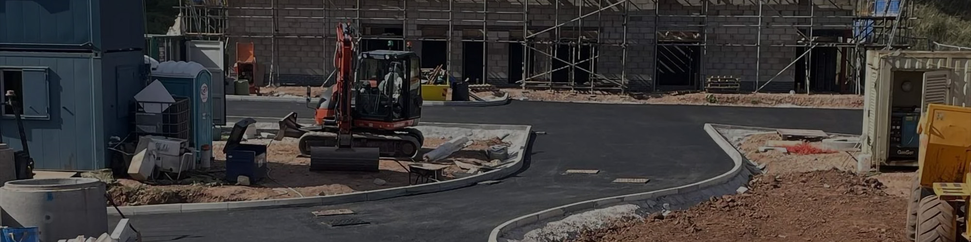 Off site and on site drainage, off site services, access road, and the foundations for the building, followed by finishing works of topsoiling and patio.
